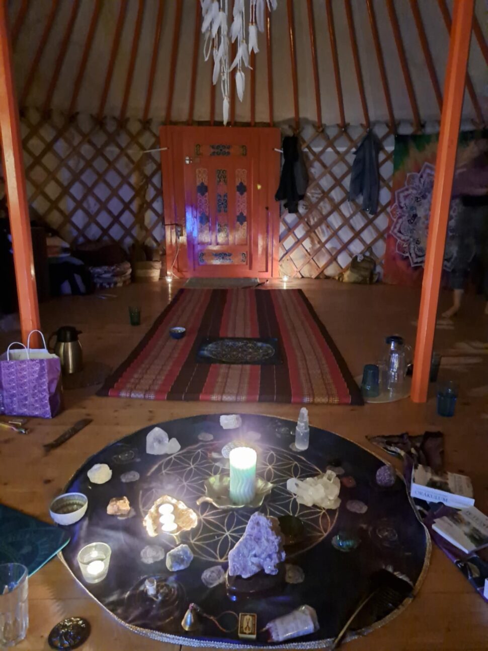 Medicínské kruhy tvořím v jurtě na míru. Svolávám do kruhu ženy (účastnice z mých minulých akcí) ve chvíli, kdy se přihlásí osoba, která se chce nechat léčit či jinak energeticky pozvedat.